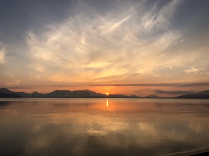 湖畔側から太陽が昇るため、美しい朝焼けもみることが可能です。