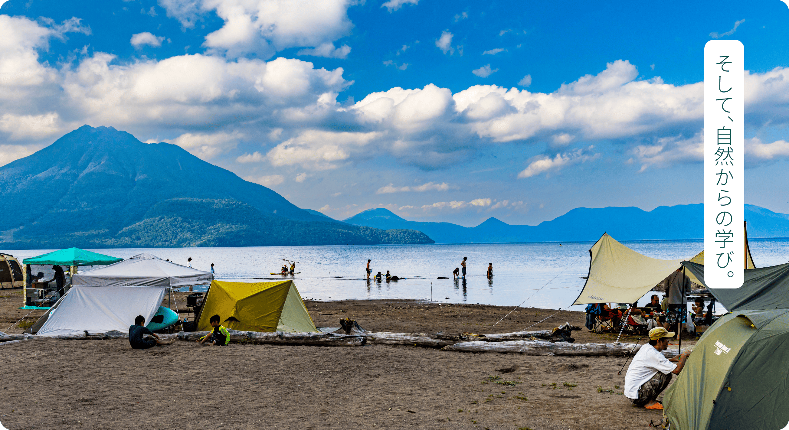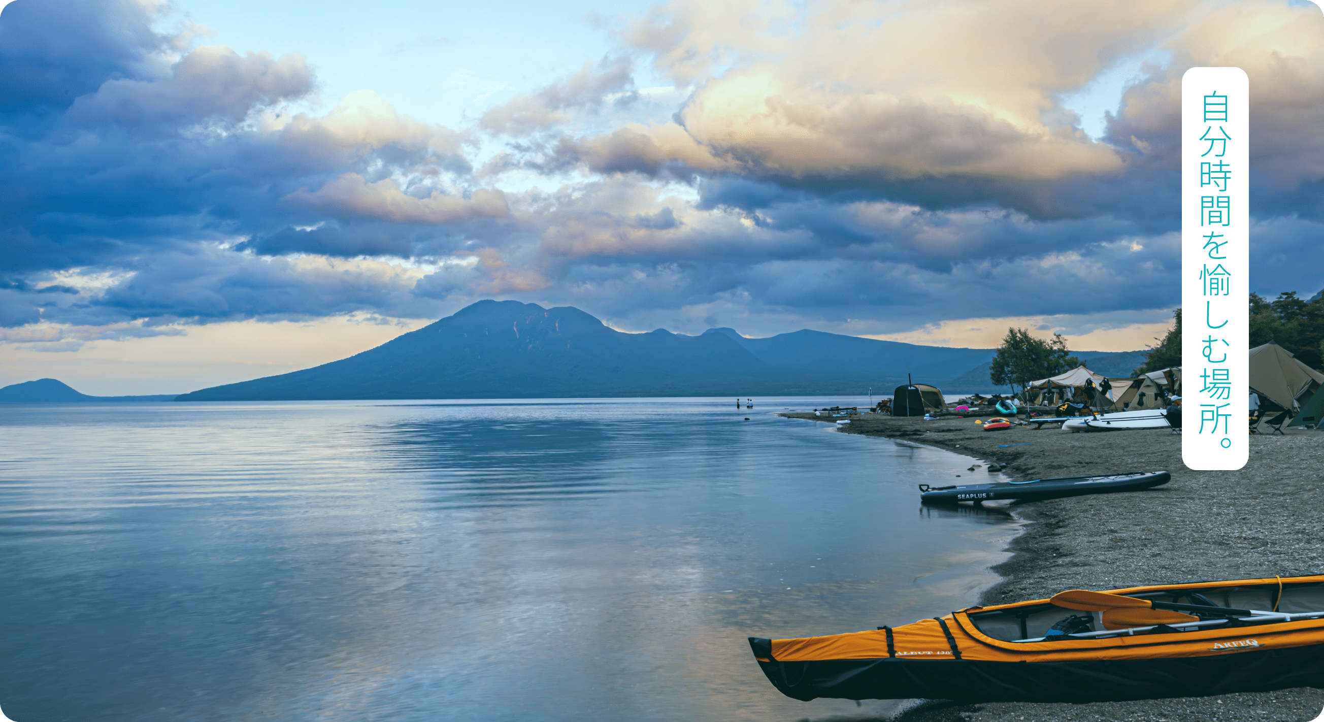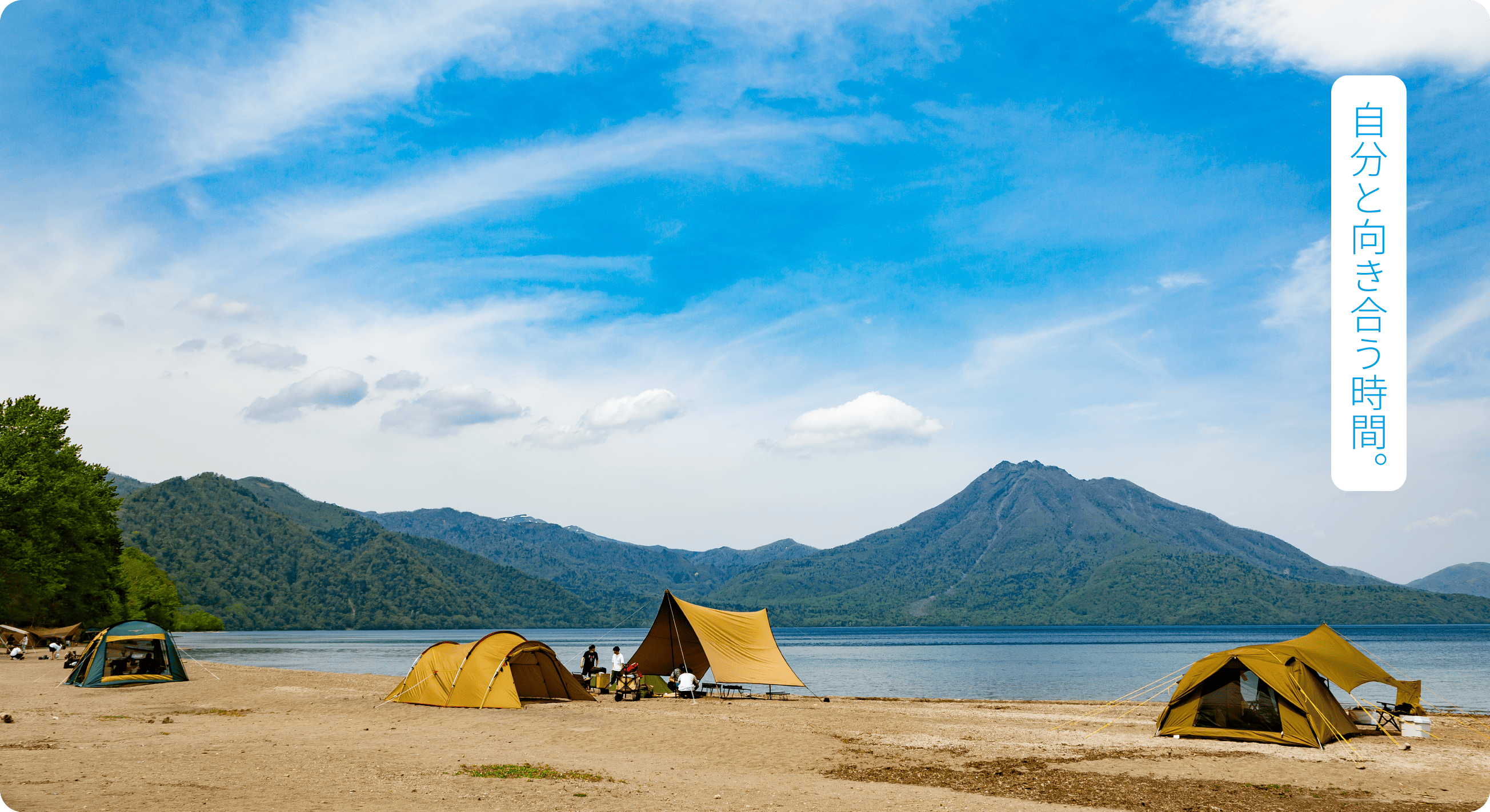 圧倒的な透明度を誇る穏やかな支笏湖を眺め、大自然を感じながらキャンプ。