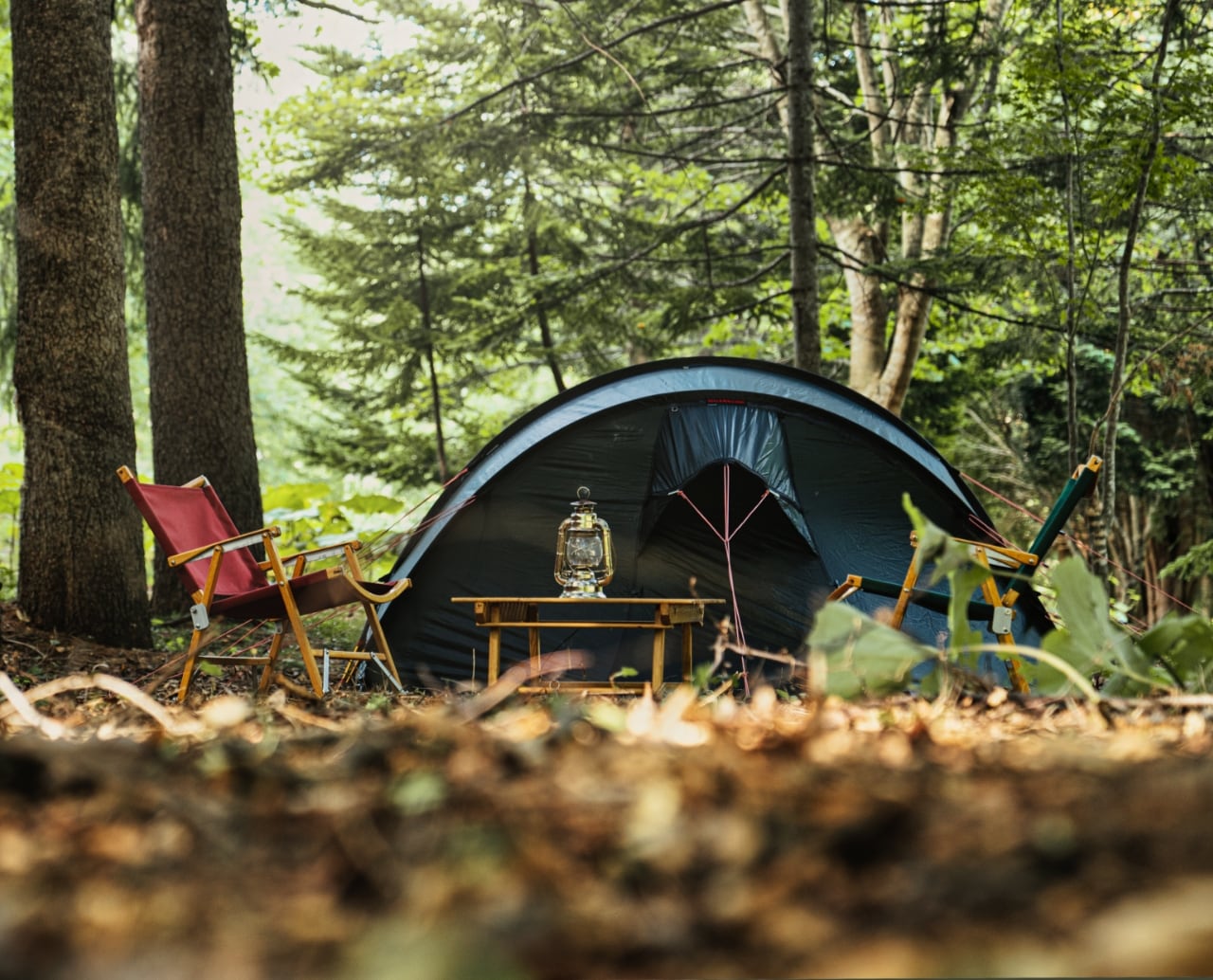 FOREST TENT SITEを予約して、自前のテントを設営。広々とした区画で、他の利用者と距離を保てるので静かな環境で過ごせます。 - 15:00 自然散策 & 読書タイム