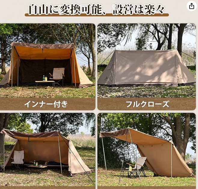 こちらはなんとインナー付き、サイドウォール付き、煙突穴付きでフルシーズン対応できるのに2万円台前半で購入できる価格になっています。