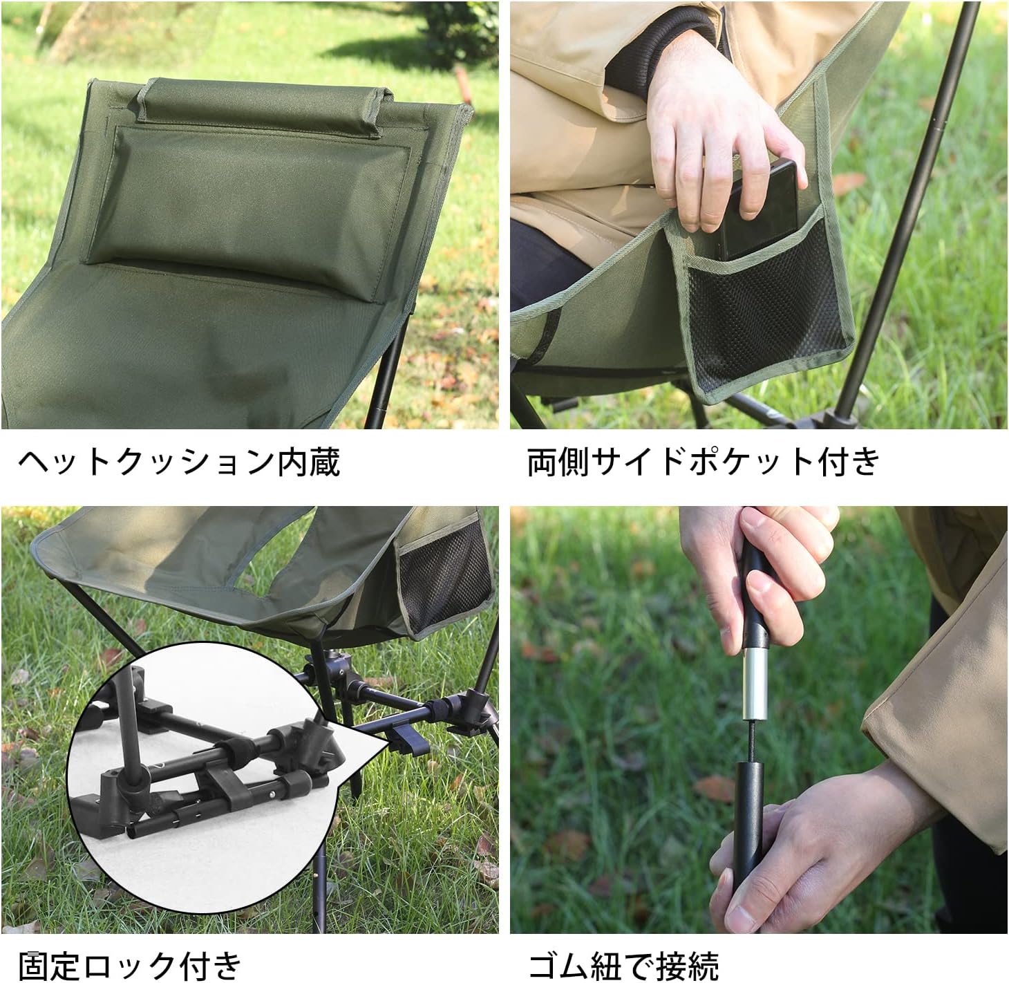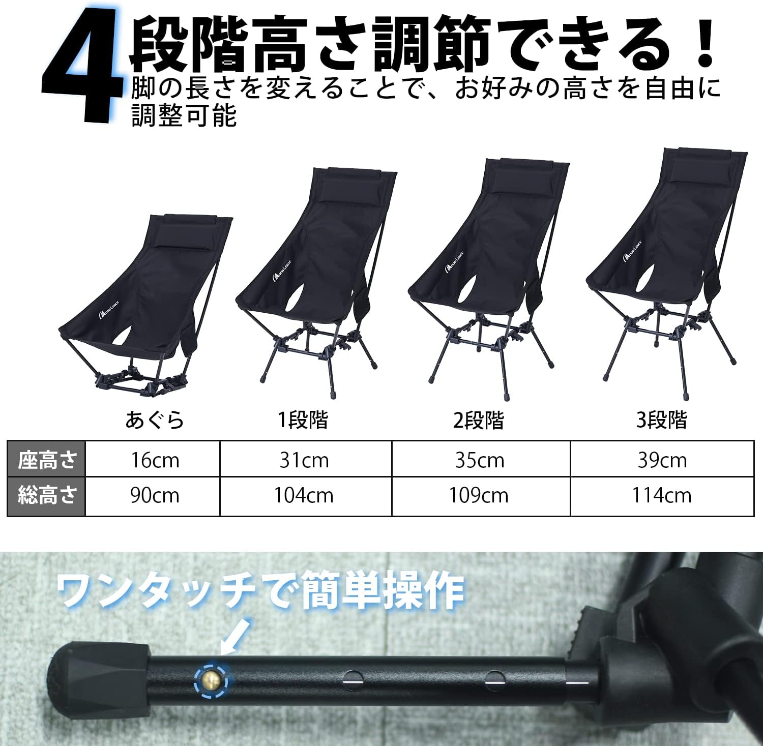 背もたれがしっかりとしているため全体を包み込むような座り心地で、キャンプで過ごす時間の質がぐっと上がると思います。