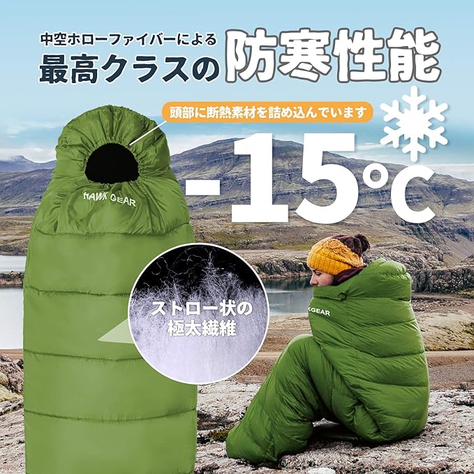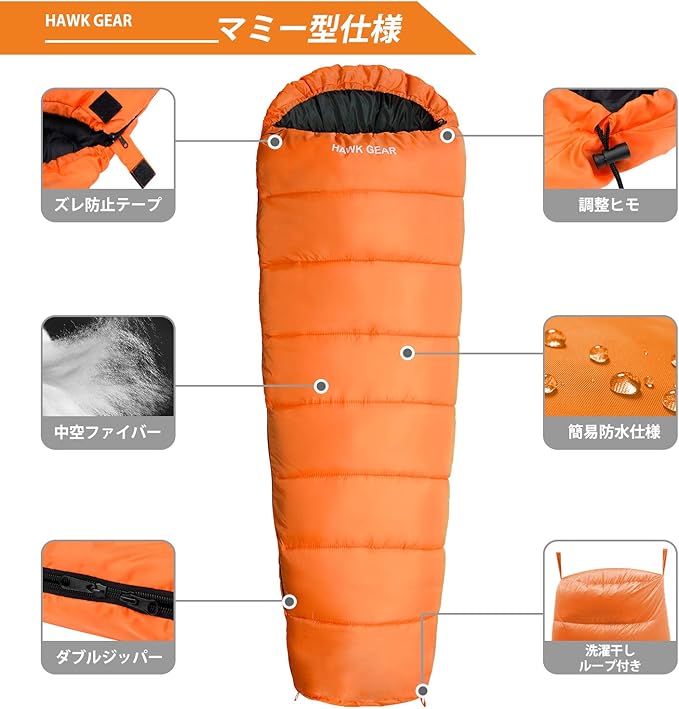 ②[HAWK GEAR(ホークギア)] 寝袋 シュラフ マミー型