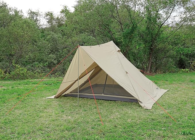 徒歩キャンプで軽量がいいけど前室(ルーフ)も欲しい!そんな方にオススメのワンポールテントがこちら。設営の簡単さはそのままにソロでも広々使えるテントになっています。